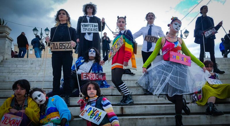 Οι μαθητές που έντυσαν το Σύνταγμα με χρώματα και έκφραση, ζουν μέσα σε αυτά. Τα σχολεία τους, που μπαίνουν 12 χρόνων με εξετάσεις διεκδικώντας μία από τις ελάχιστες θέσεις στις κατευθύνσεις τους -το καλλιτεχνικό σχολείο του Γέρακα απορροφά από όλη την Ανατολική Αττική μόνο 18 παιδιά σε κάθε κατεύθυνση κάθε χρόνο (χορό, κινηματογράφο/θέατρο και εικαστικά)- είναι γεμάτα τέχνη. Τέχνη από εκείνη που ζεις μαζί της, που την αναπνέεις που σε καθορίζει ως άνθρωπο.