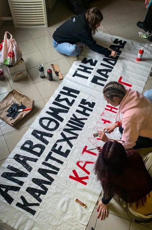«Τα Καλλιτεχνικά Σχολεία είναι δημόσια σχολεία δευτεροβάθμιας γενικής εκπαίδευσης, με διευρυμένο πρόγραμμα και με έμφαση στις Τέχνες. Αφού οι μαθητές έχουμε μπει στη διαδικασία των εξετάσεων για να εισαχθούμε στο σχολείο μας περιμένουμε το αυτονόητο, ότι θα έχουμε καθηγητές καλλιτεχνικών μαθημάτων. Δυστυχώς περιμένουμε, αγωνιζόμαστε και έπειτα απογοητευόμαστε αφού κάθε χρόνο διορίζονται από το Υπουργείο Παιδείας και Θρησκευμάτων ύστερα από πολλούς μήνες αναμονής. Κατάλληλες κτιριακές υποδομές δεν υπάρχουν, έτσι οι μαθητές κάνουν μαθήματα τέχνης σε προαύλια και διαδρόμους. Τέλος όταν αποφοιτήσουμε δεν έχουμε καμία αναγνώριση στα καλλιτεχνικά μαθήματα».